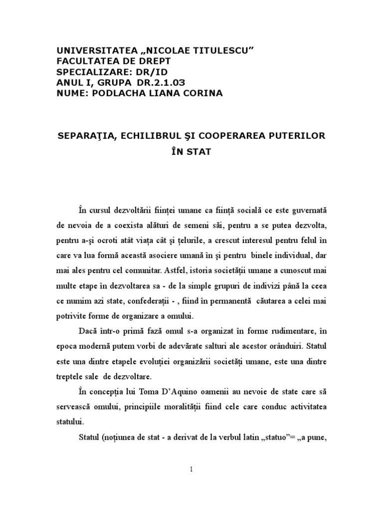 vizitati articolul complet aici : 2 Unadintre nclinaiile omului este de a dobndi ct mai multe bunuri,bani, putere, leznd astfel interesele semenilor lui. Parlamentul poate să adopte ____ 5. Ideea principală care se desprinde din prima parte a lucrării este aceea că importanşa principiului separării puterilor în stat a fost apariţia puterilor publice, rolul lor deosebit în configurarea instituţiilor juridice şi politice, determină ca astăzi separarea sau echilibrul.