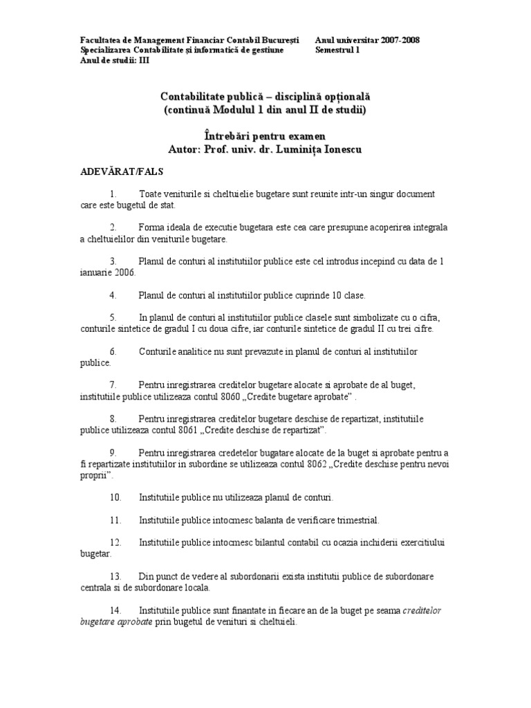 vizitati articolul complet aici : 2 Subventii de la bugetul de stat pentru institutii si servicii publice sau activitati finantate integral din venituri proprii. La clasa 4 conturi de teri, grupa 45 decontri cu comunitatea. Institutie publica cu personalitate juridica, subordonata consiliului judetean, personal contractual.