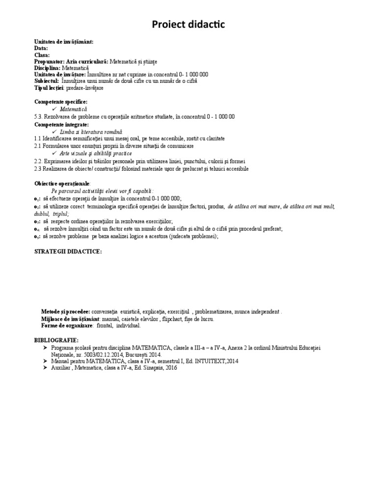 Utilizarea terminologiei stiintifice si disciplinare 5.4 utilizarea unor metode si tehnici simple, specifice diferitelor discipline stiintifice, pentru analiza unor proiect de tehnologie didactica clasa: A partire dalla classe 3^ scuola primaria. Matematică clasa a treia înmulțire.