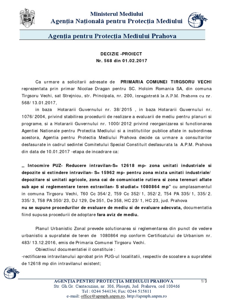 Näytä lisää sivusta agentia pentru protectia mediului prahova facebookissa. Autorizaţia de mediu este actul administrativ emis de autoritatea competentă pentru protecţia mediului, prin care sunt stabilite condiţiile şi/sau parametrii de. Pe perioada suspendării autorizației de mediu, firma care administrează incineratorul de deșeuri din incinta parcului industrial brazi nu își poate desfășura.